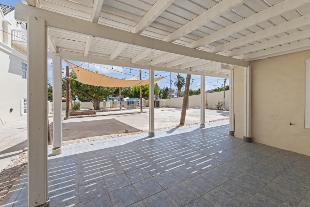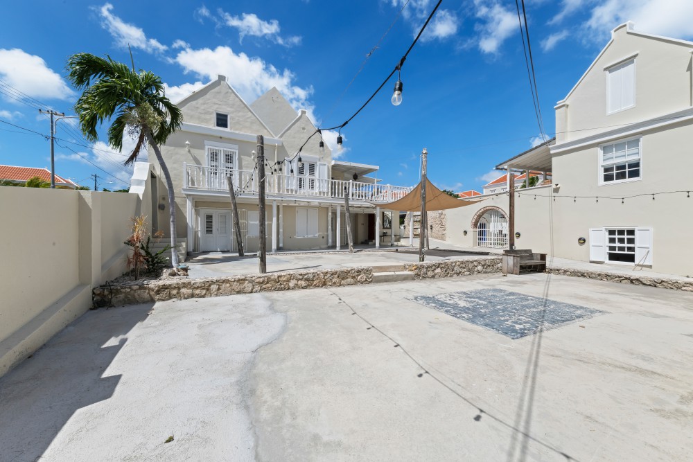 Historic building for rent in central Otrobanda Curacao featuring a rare 230 m² terrace, directly opposite the cruise terminal and facing the Norman de Palm theater. Perfect for hospitality, bar, gallery, or cultural concept with visibility, atmosphere and a continuous flow of tourists.