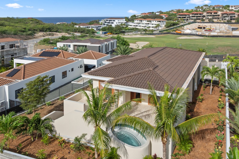 Exclusive new villa in Blue Bay Golf & Beach Resort Curacao W-section. 4 bedrooms, 4.5 bathrooms, pool, jacuzzi, guest unit & ocean views. Premium finishes, solar panels & rental potential make this a unique investment.