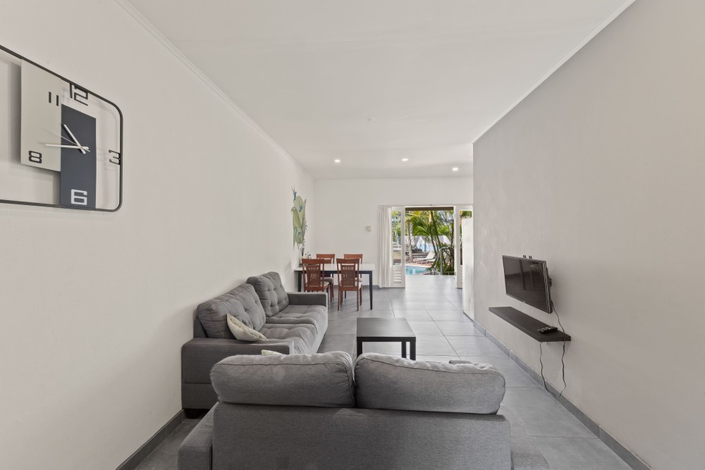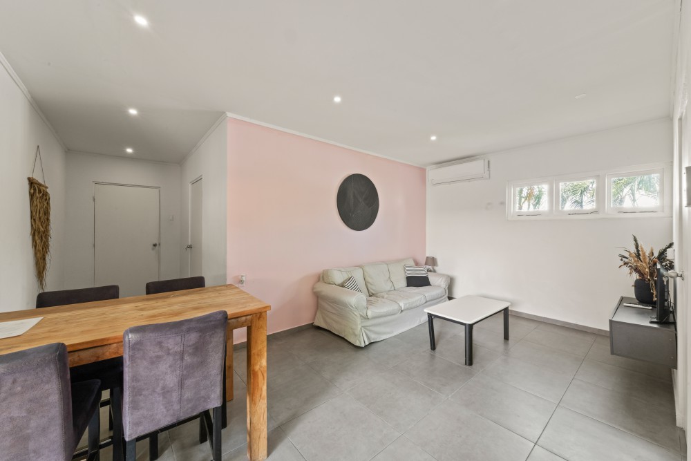 Thanks to its central position on Curaçao, beaches, supermarkets, restaurants, and main roads are all within easy reach. The small-scale setup ensures privacy and tranquility, while the layout and amenities are designed for comfortable living and both short- and long-term rentals. Each apartment is bright and well-kept, featuring two bedrooms, one or two bathrooms, a fully equipped kitchen, and a spacious living room with direct access to the porch. Large windows bring in plenty of natural light, creating a seamless connection between indoor and outdoor living.