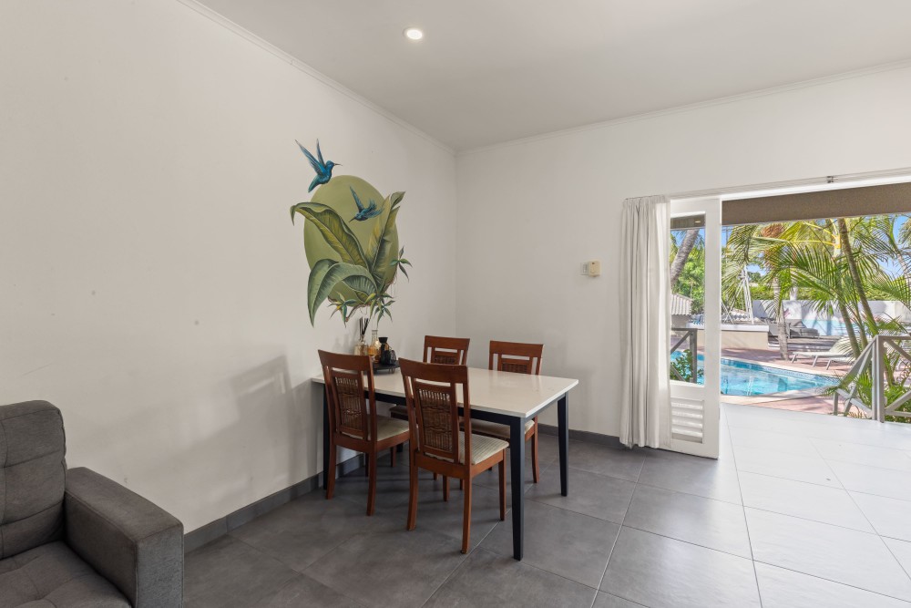 This centrally located apartment complex consists of nine two-bedroom apartments, each with a spacious porch and a relaxed tropical atmosphere. Some of the apartments offer pool views. The property is well maintained and combines strong rental performance with an attractive location, making it an appealing opportunity for investors.