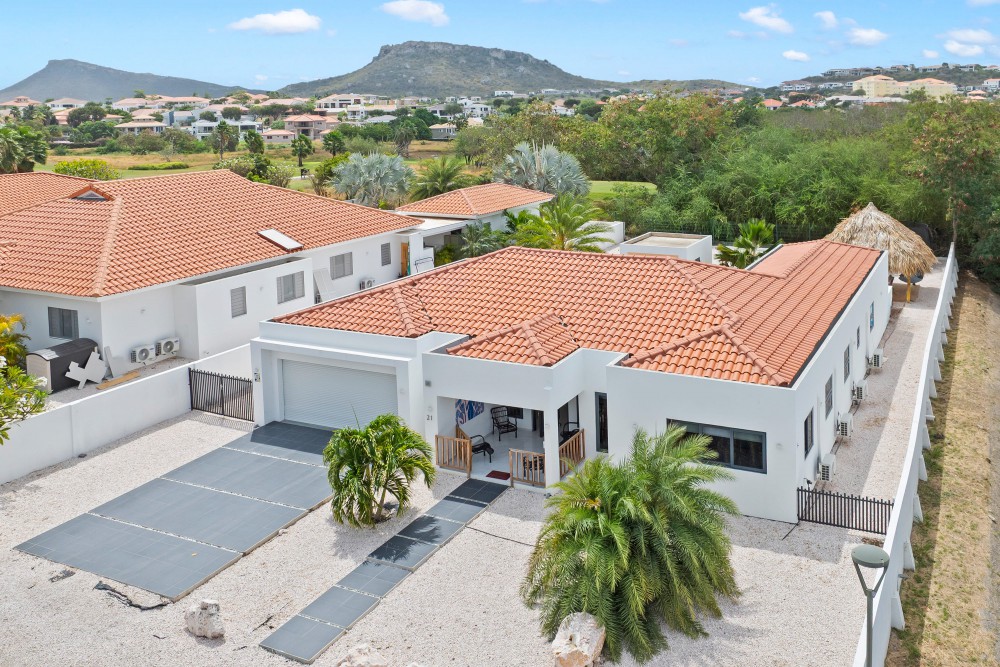 This four-bedroom villa is located in the L-section of Blue Bay Golf & Beach Resort Curacao and is set on a spacious lot with mature landscaping and a partial backdrop to the golf course, offering privacy and a relaxed residential setting.