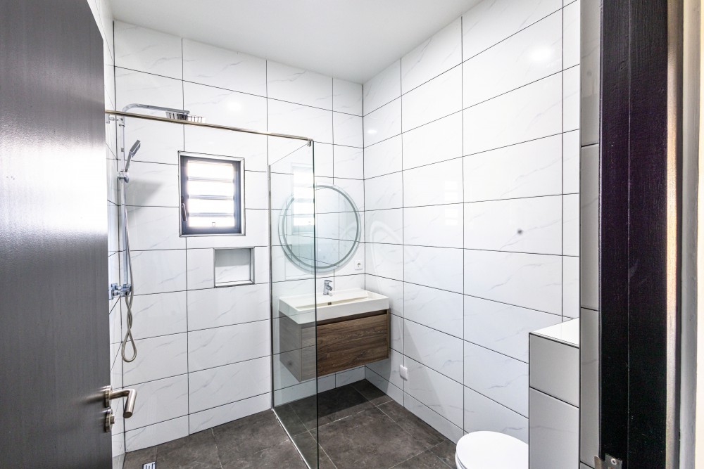 The villa offers three spacious bedrooms, each with its own private bathroom. Designed with attention to detail and comfort, every bedroom is air-conditioned, equipped with a large-screen TV, and integrated into the Smart Home system. The master suite, located in the left wing, includes a walk-in dressing room, direct access to the terrace, and even a built-in sound system in the ceiling.