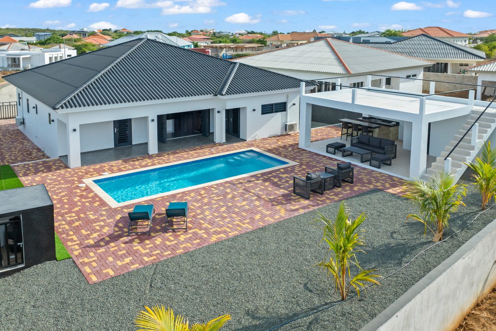 This newly built 3-bedroom villa in Harmonie Curacao offers modern design, sea views, and ultimate comfort. Featuring a large pool, gazebo with bar, smart home system, and fully furnished interiors.