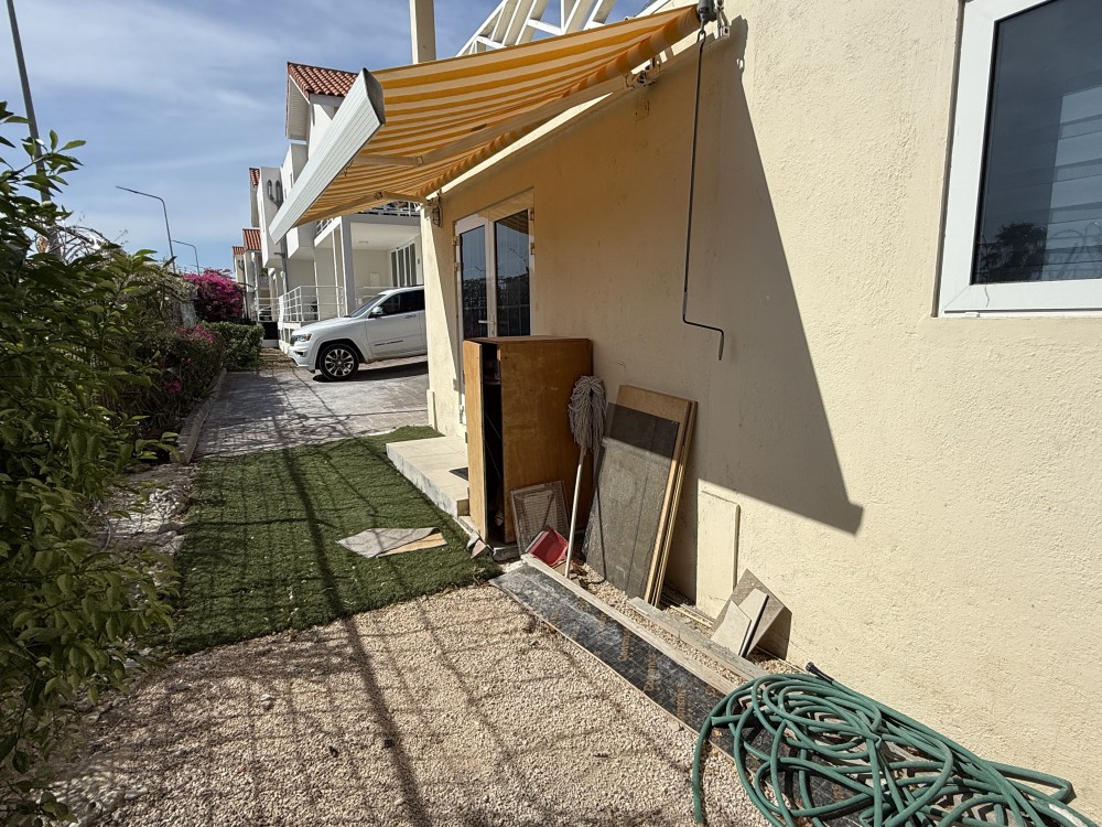Situated on the lower level at the edge of the resort, this renovated apartment features a pleasant outdoor terrace with a sunshade, perfect for relaxing or dining outdoors. The living room with double doors offers a bright, open atmosphere and connects seamlessly with the modern kitchen, equipped with a stove, refrigerator, and oven.