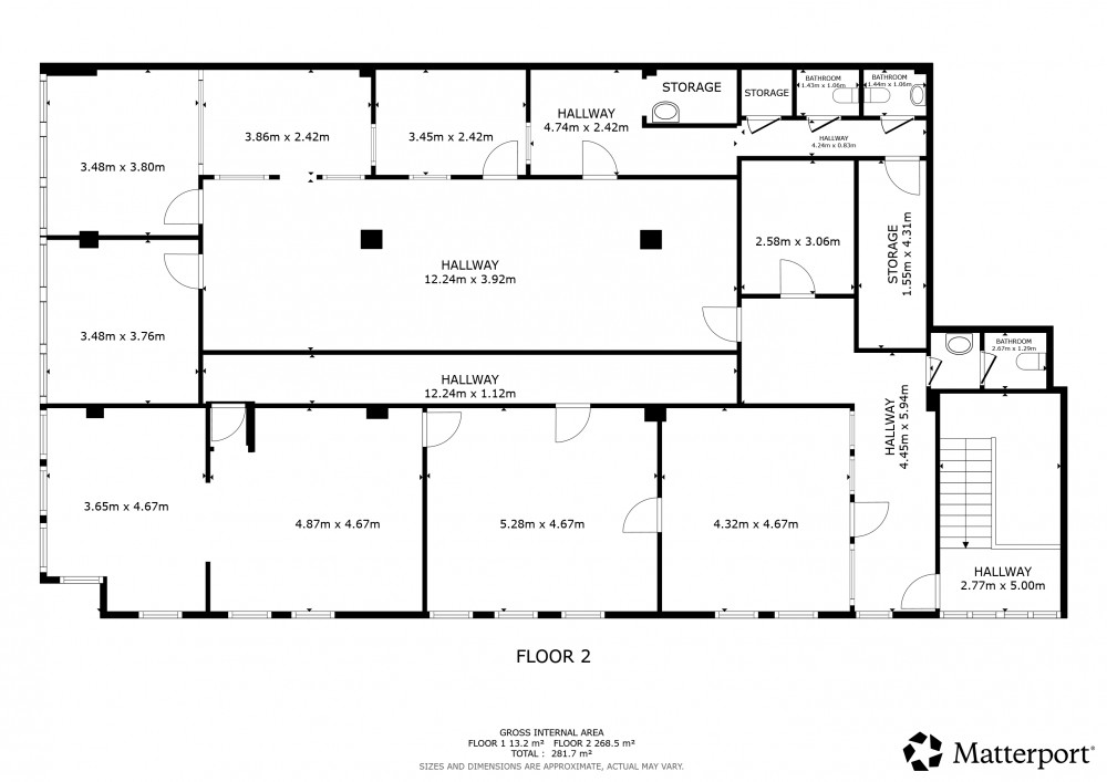Verdeling: twee verdiepingen van elk ca. 260 m²