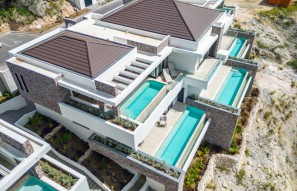 Moderne 5-slaapkamer villa in het exclusieve Cas Abou Resort Curacao met adembenemend zeezicht, 2 zwembaden, gastensuites, zonnepanelen en ruime...