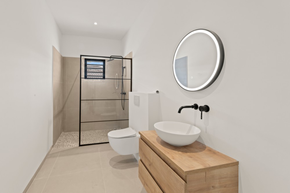 De woning beschikt over vier ruime slaapkamers, waaronder een luxe hoofdslaapkamer met een en-suite badkamer en een walk-in closet. De overige drie slaapkamers zijn ook royaal bemeten en delen twee goed ingerichte badkamers, waardoor deze woning ideaal is voor gezinnen of gasten. Alle slaapkamers zijn ontworpen met comfort en privacy in gedachten, en bieden voldoende ruimte voor persoonlijke inrichting.