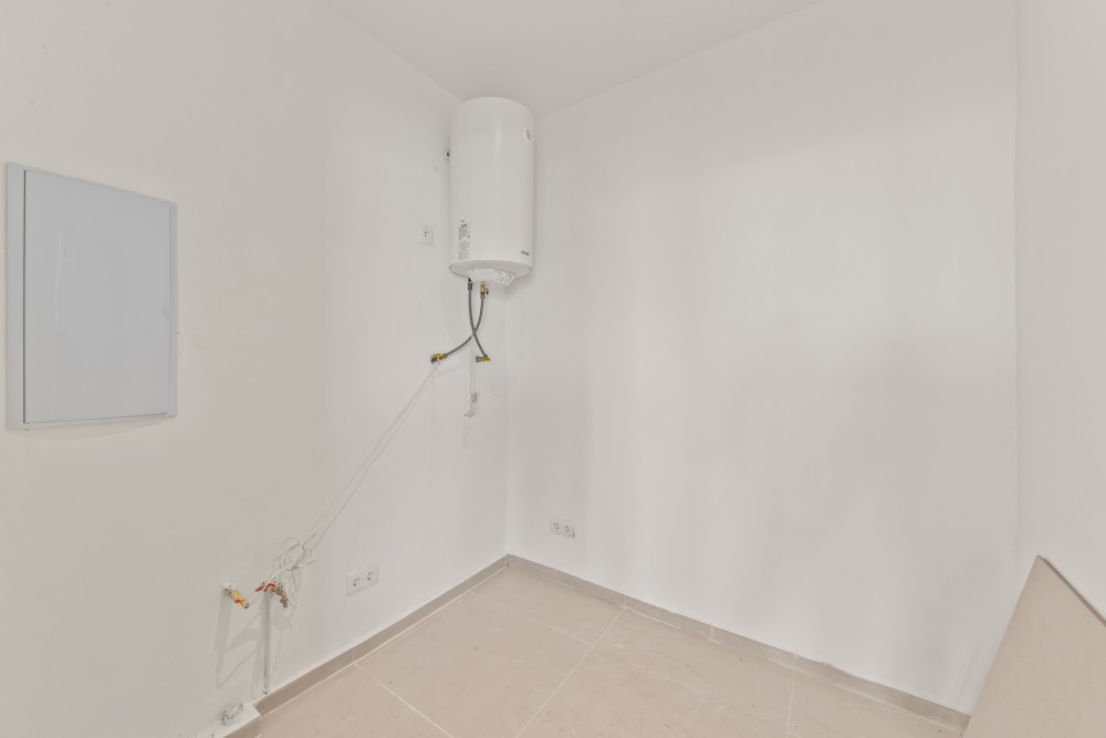 Daarnaast heeft de woning praktische ruimtes zoals een bijkeuken en een gang die toegang geeft tot verschillende delen van het huis. Deze bijkeuken is ideaal voor extra opslag en huishoudelijke taken, terwijl de gang een efficiënte doorstroom in de woning mogelijk maakt.