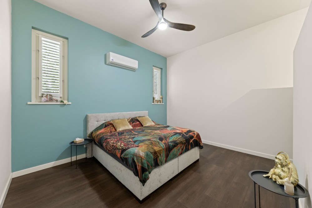 De villa beschikt over een ruime master suite met eigen entreehal, luxe badkamer met dubbele douche, grote walk-in-closet en airconditioning. Daarnaast is er een tweede slaapkamer met en-suite badkamer op de begane grond.