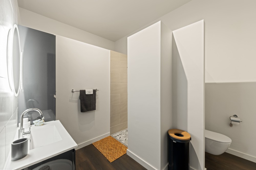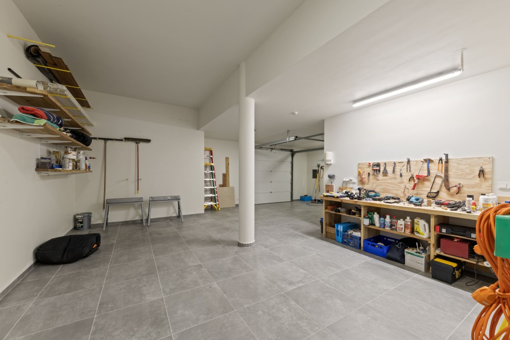 In het souterrain bevindt zich een derde slaapkamer, de garage en een volledig zelfstandig gastenappartement met woonkamer, keuken, slaapkamer en eigen badkamer. Dit appartement heeft een eigen terras en een apart sleutelplan, ideaal voor privacy van gasten of verhuur.