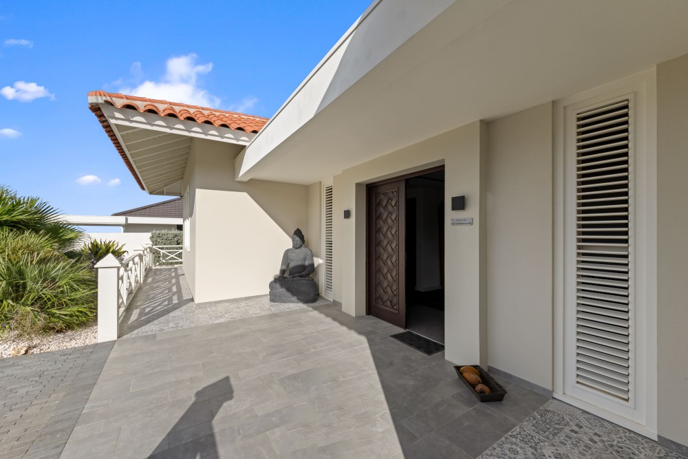 Het buitengebied is ontworpen voor optimaal woongenot. Een overdekte porch met eettafel en loungehoek biedt een heerlijke plek om samen te komen. De buitenkeuken met spoelbak en teppanyakiplaat maakt koken met gasten tot een feest. Het infinity pool met JetStream, waterval en zoutwatersysteem vormt het middelpunt. Het water kan verwarmd of gekoeld worden en biedt een unieke plek om te ontspannen of actief te zwemmen. Onder de palapa vindt u een royale loungeset waar u geniet van de bries en de zonsondergang.