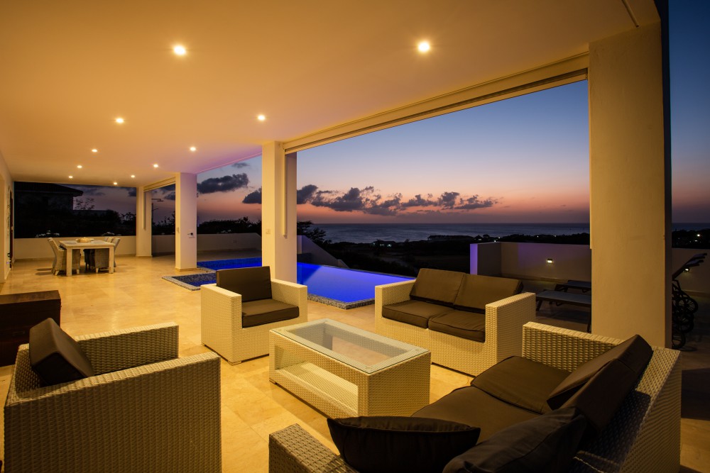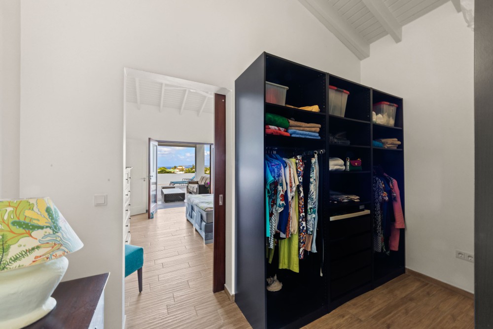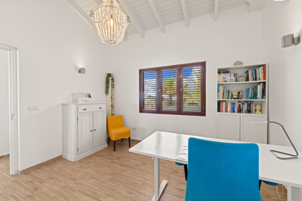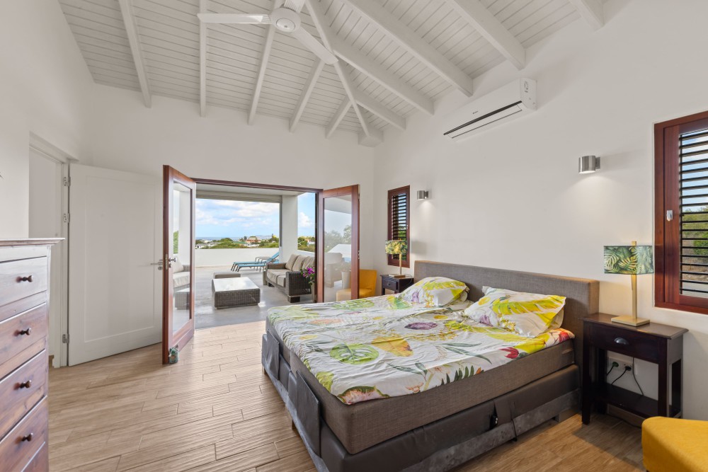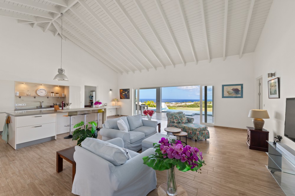 De uitstekende positie op de wind maakt dat deze woning licht en luchtig aanvoelt en het echte ‘Caribische leven’ bevestigt. Vanuit de woonkamer, de tuin en het zwembad geniet u van een weids uitzicht over Blue Bay Resort, de golfbaan én de azuurblauwe zee.