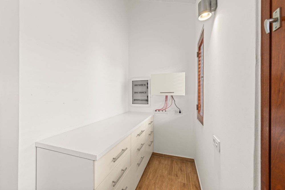 Direct naast de keuken is een handige nis gesitueerd met extra opslag- en werkbladruimte.
