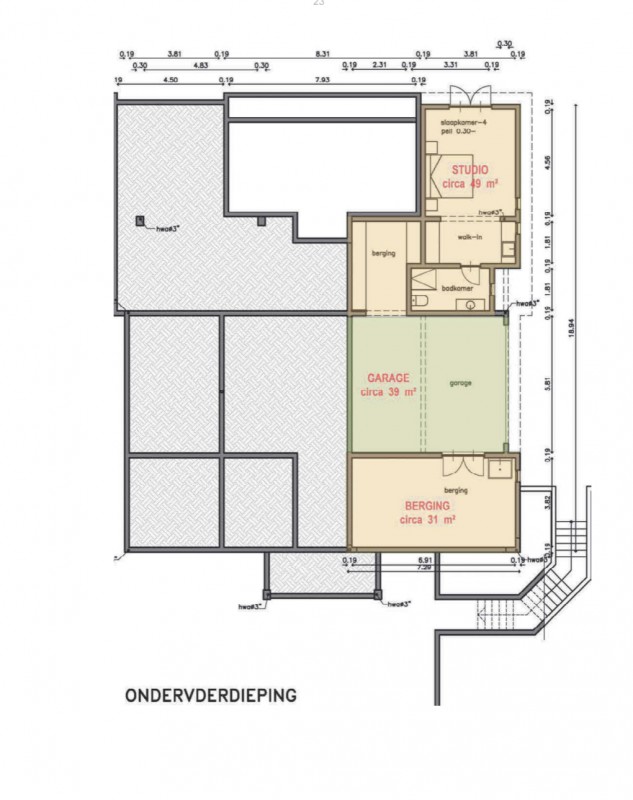 Een ruime overdekte garage onder de woning biedt voldoende plaatst voor twee grote auto’s. Er is een laadaansluitpunt aanwezig zodat eventuele elektrische voertuigen opgeladen kunnen worden. Door het (laten) installeren van een garagedeur is de ruimte, indien gewenst, volledig af te sluiten.