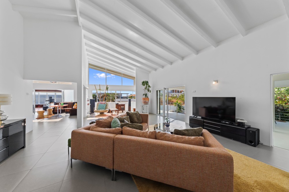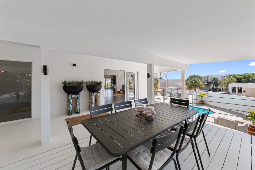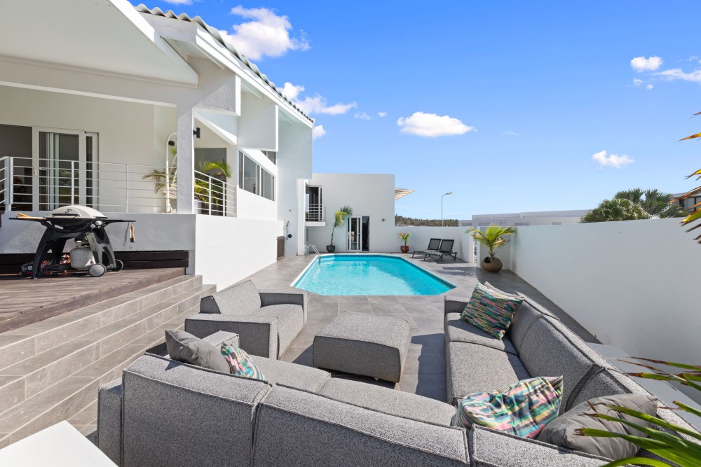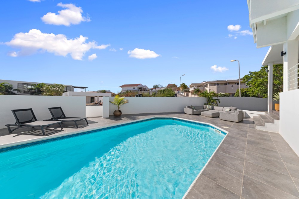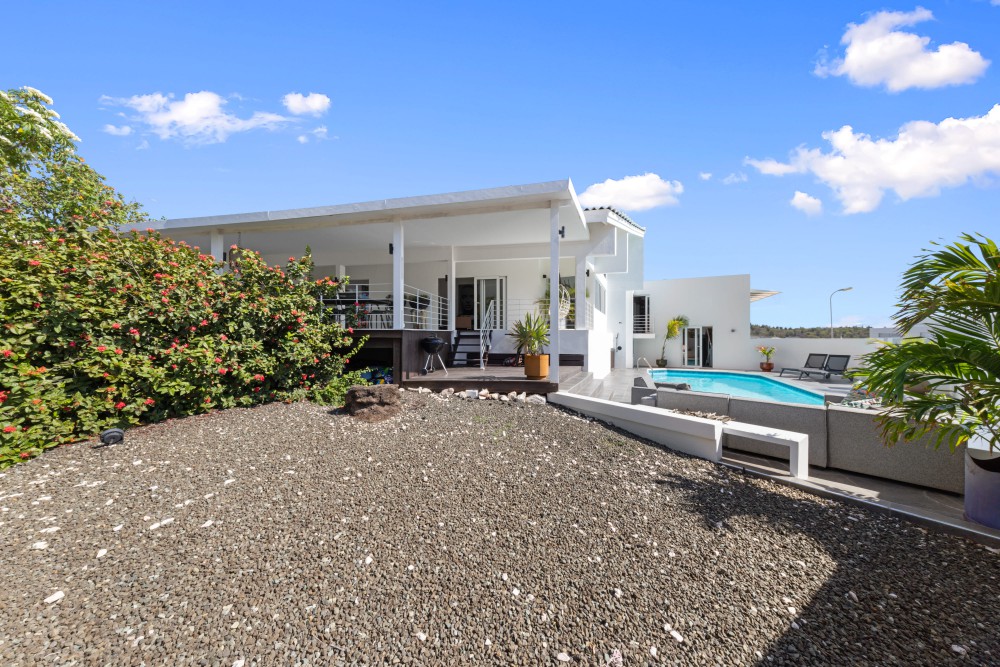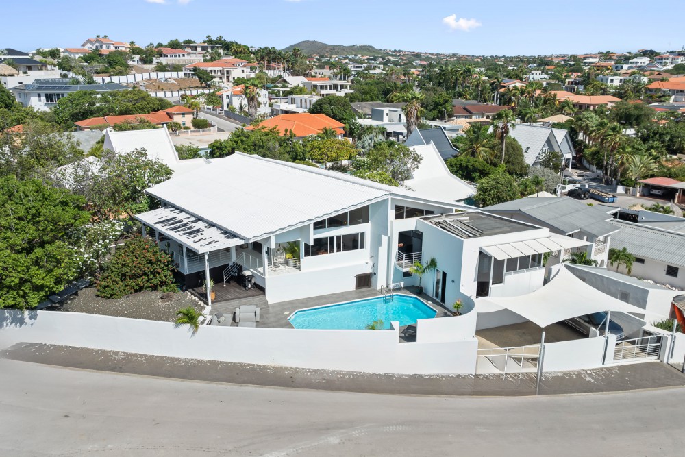 In de hoger gelegen delen van de exclusieve en beveiligde woonwijk Jan Sofat ligt deze moderne, smaakvol ingerichte villa. Het huis staat op een ruim, hellend hoekperceel en combineert een eigentijds design met comfort en privacy.