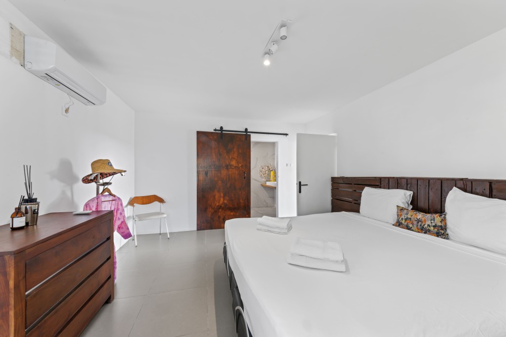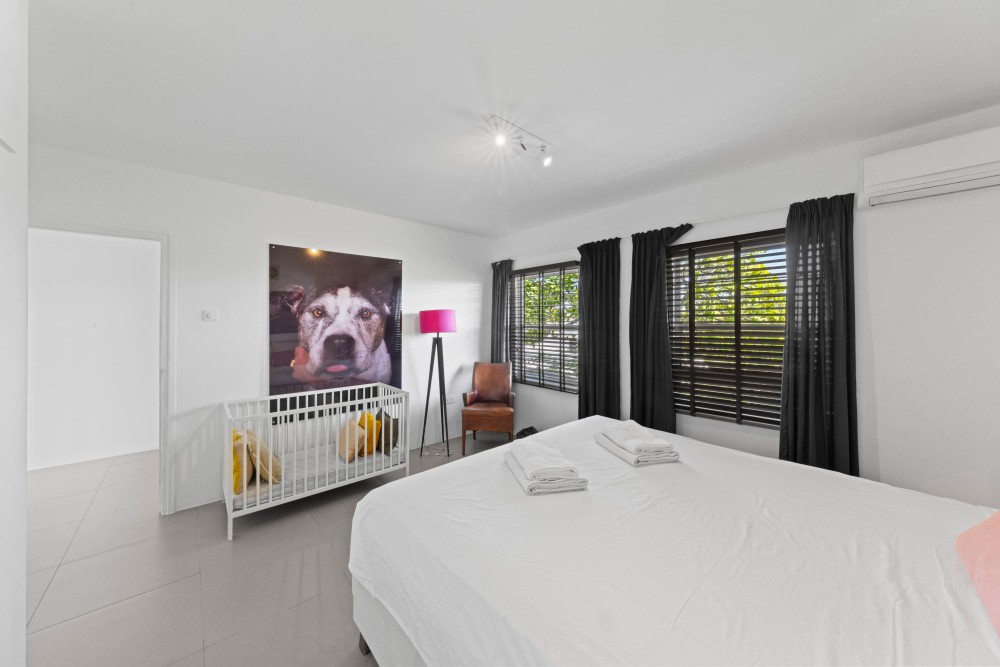 De villa beschikt over een royale master bedroom met een recent gerenoveerde en-suite badkamer, direct toegankelijk vanuit de woonkamer. Aan de linkerzijde van de woning bevinden zich nog twee comfortabele slaapkamers, beide voorzien van inbouwkasten en een gedeelde badkamer. Op de benedenverdieping is een vierde slaapkamer ingericht, samen met een derde, volledig nieuwe badkamer en een multifunctionele ruimte die momenteel als studeerkamer wordt gebruikt.