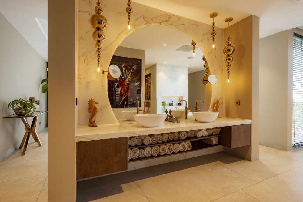 • Gebouwd met exclusieve natuurlijke materialen zoals Italiaans en Iraans marmer en Europese designaccenten