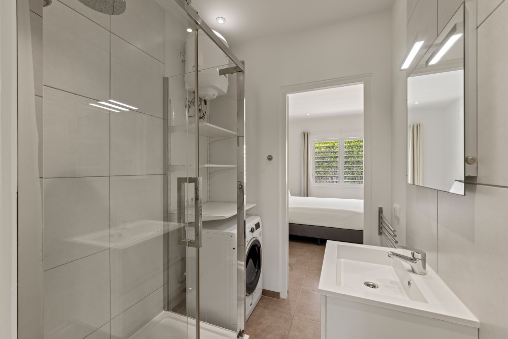 De twee goed bemeten gastenslaapkamers delen samen één complete badkamer.