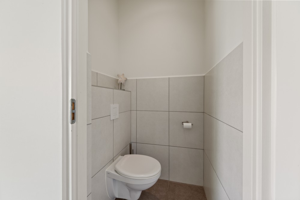 De keuken is voorzien van alle benodigde inbouwapparatuur. Direct naast de keuken is een handige pantry gesitueerd, met aansluitingen voor wasmachine/droger en extra opslag mogelijkheden. Een zijdeur geeft vanuit de naastgelegen carport direct toegang tot de keuken, ideaal voor het uitladen van boodschappen.